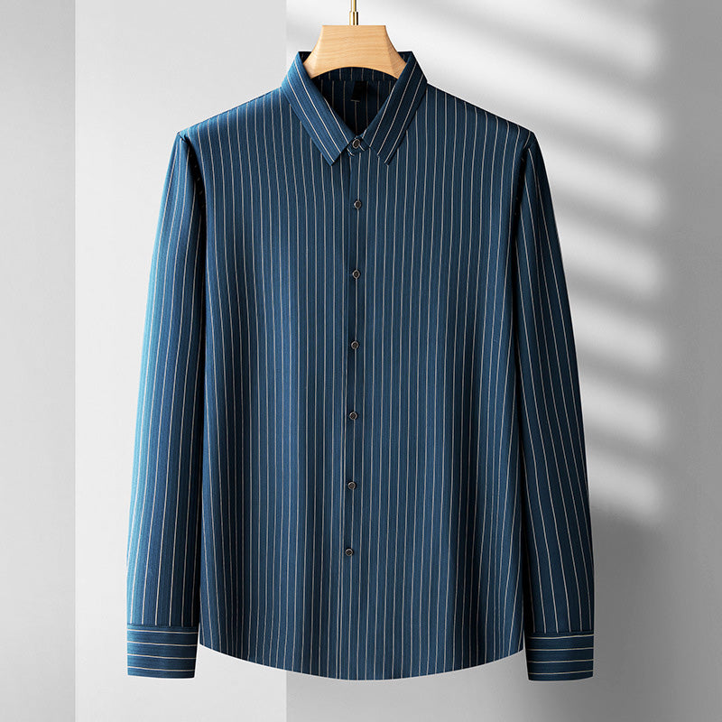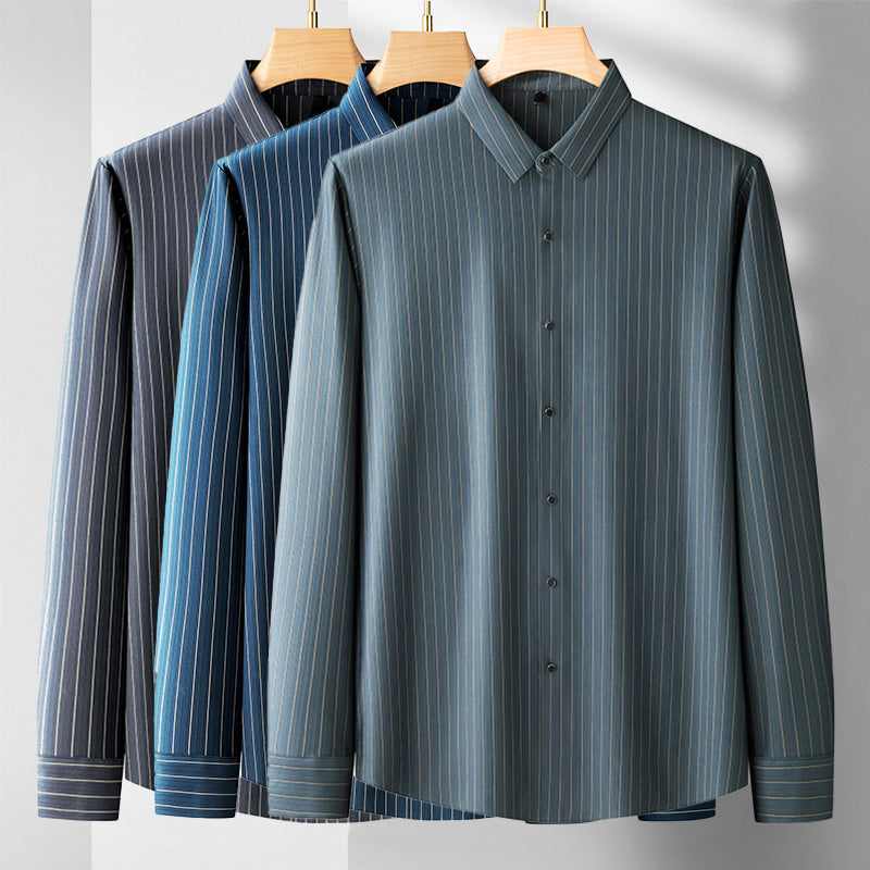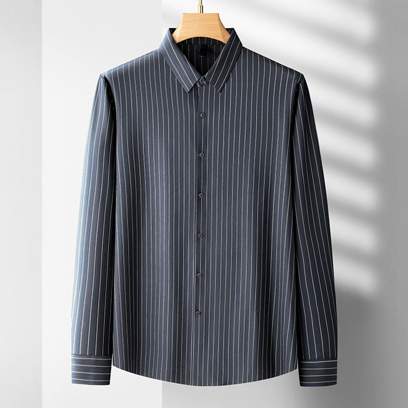Our classic Charles Morrison Business Long Sleeve Shirt is the embodiment of timeless professionalism. Crafted from high-quality, breathable fabric, this shirt ensures you remain comfortable throughout your busy workday. The subtle striped pattern adds a touch of refinement, making it the perfect choice for corporate meetings, presentations, and formal occasions.