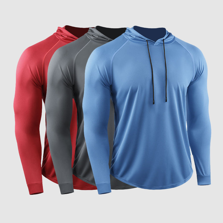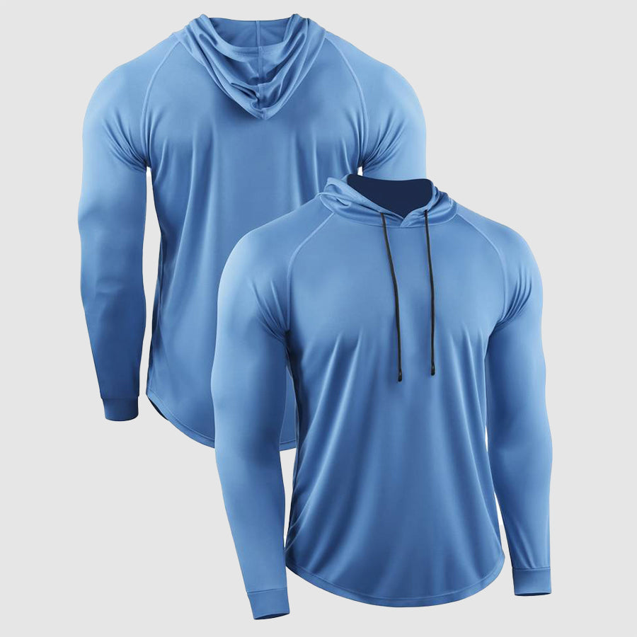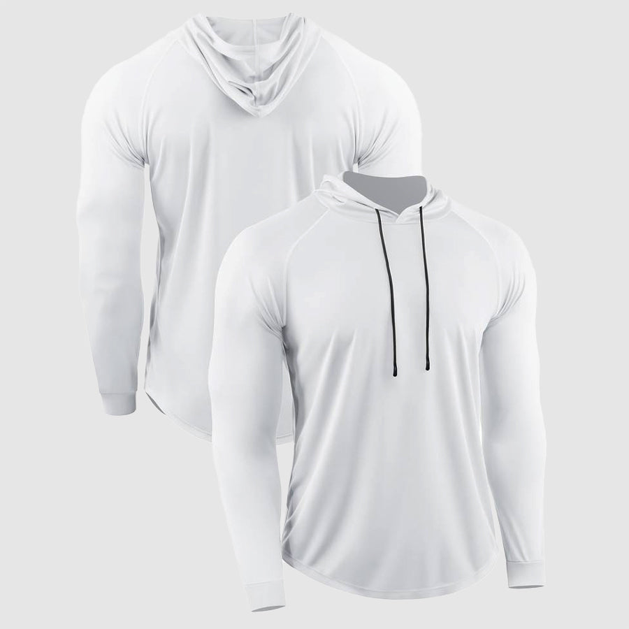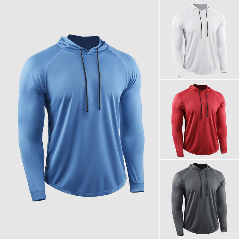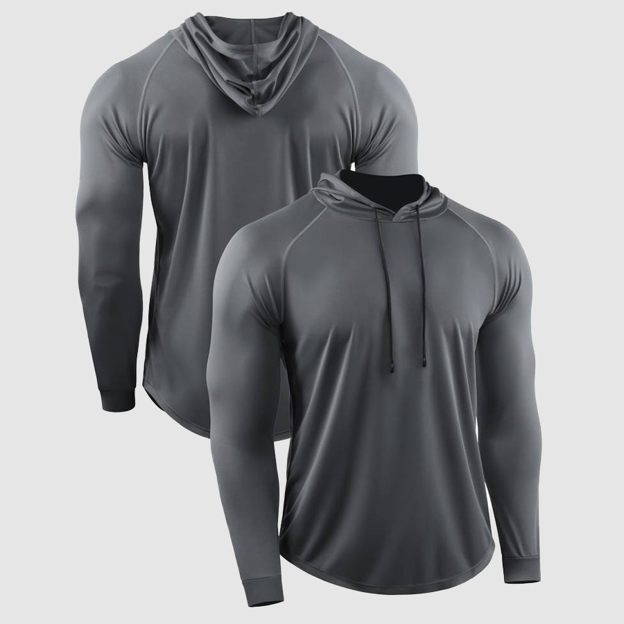 Stay comfortable and focused during your workouts with the Compression QuickDry Gym Shirt. Featuring a hood with drawstrings on the neckline and long sleeves, this shirt is designed to enhance your performance and provide the perfect fit for active sessions.