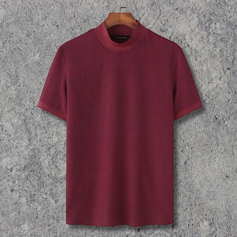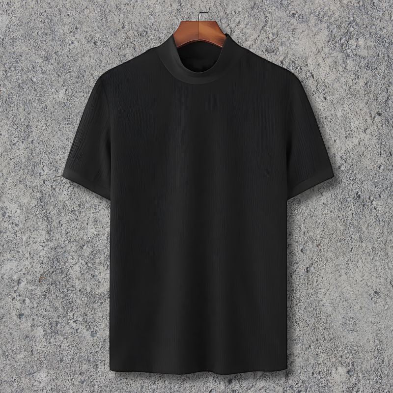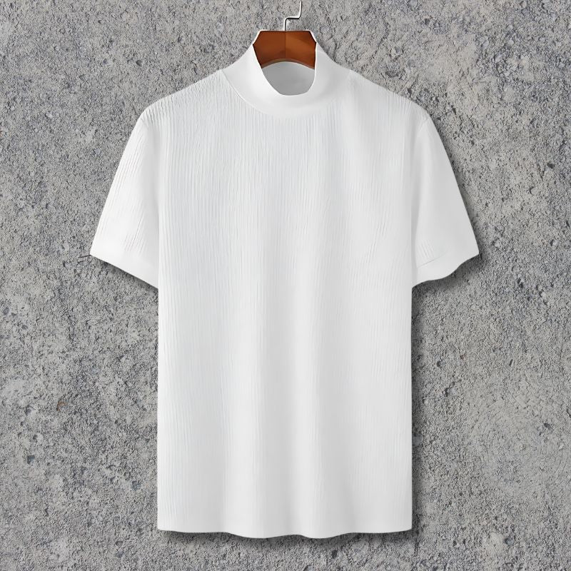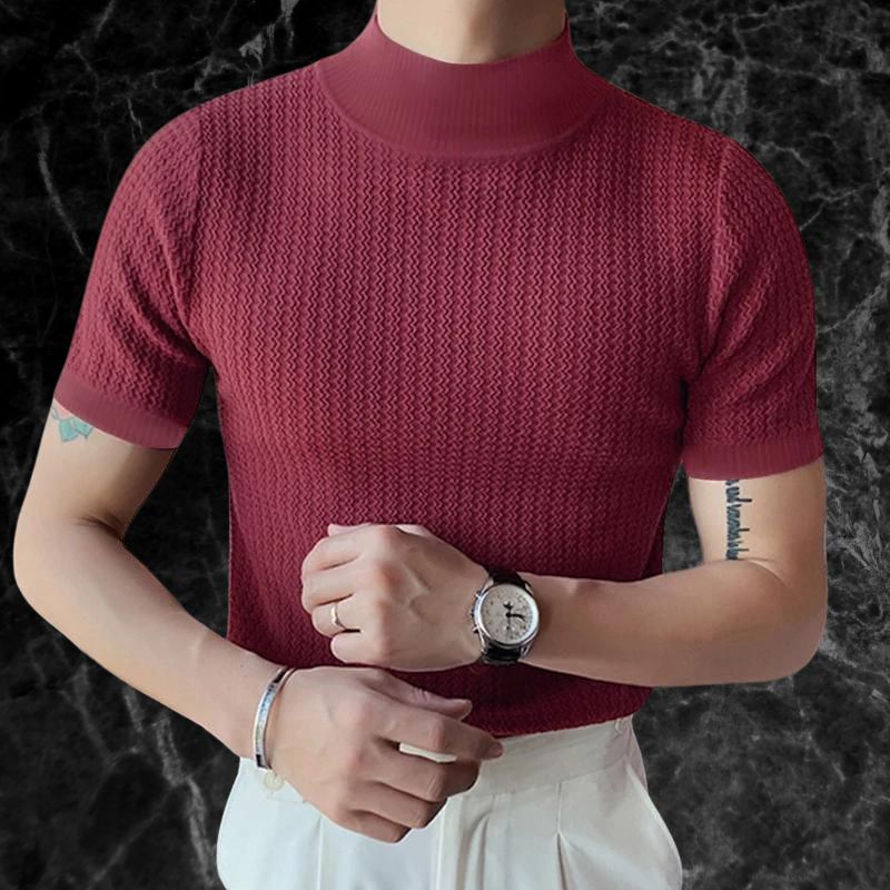 Introducing the EliteKnit Tee™, where luxurious comfort meets street style. This high-neck, short-sleeved T-shirt is crafted from a tight-knit fabric that offers a sleek, modern look. Available in solid colors, this tee is the perfect base layer for any outfit, providing a versatile and stylish addition to your wardrobe.