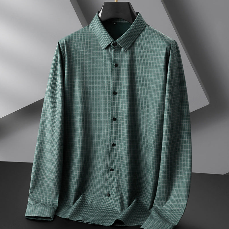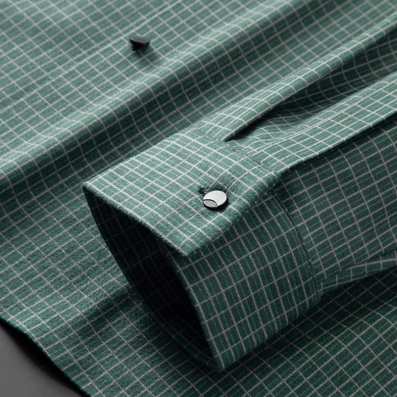 Introducing the Francesco Dante Classy Long Sleeve Shirt – a timeless and sophisticated garment featuring a captivating plaid pattern in shades of green and blue. This shirt is the epitome of classic style and modern elegance.