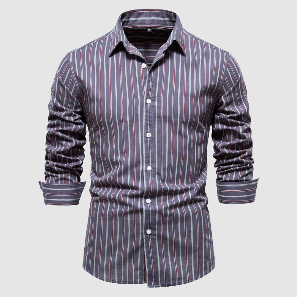 Discover timeless style and comfort with the Frank Hardy Madera Striped Long Sleeve Shirt, crafted from pure cotton for a luxurious feel. The bright and vibrant striped design adds a pop of color to your ensemble, ensuring an evergreen look that transcends trends.