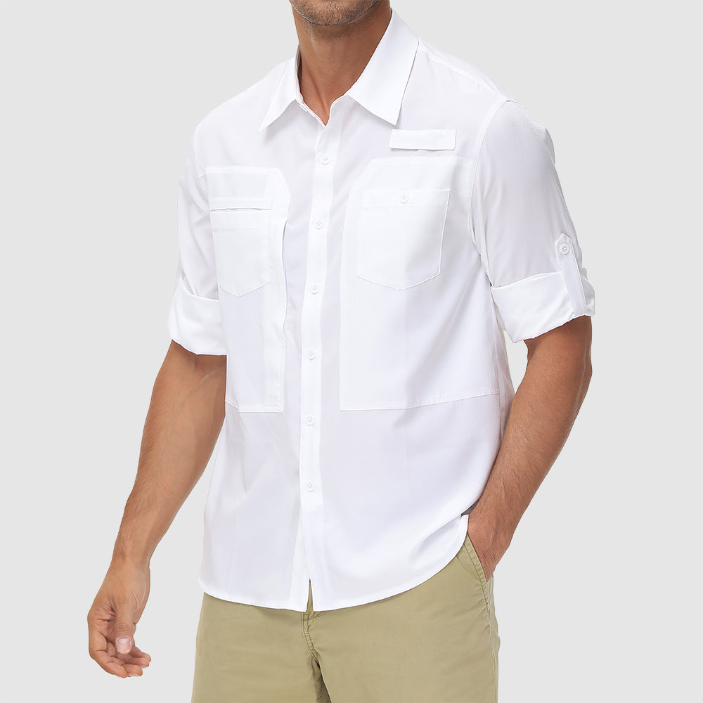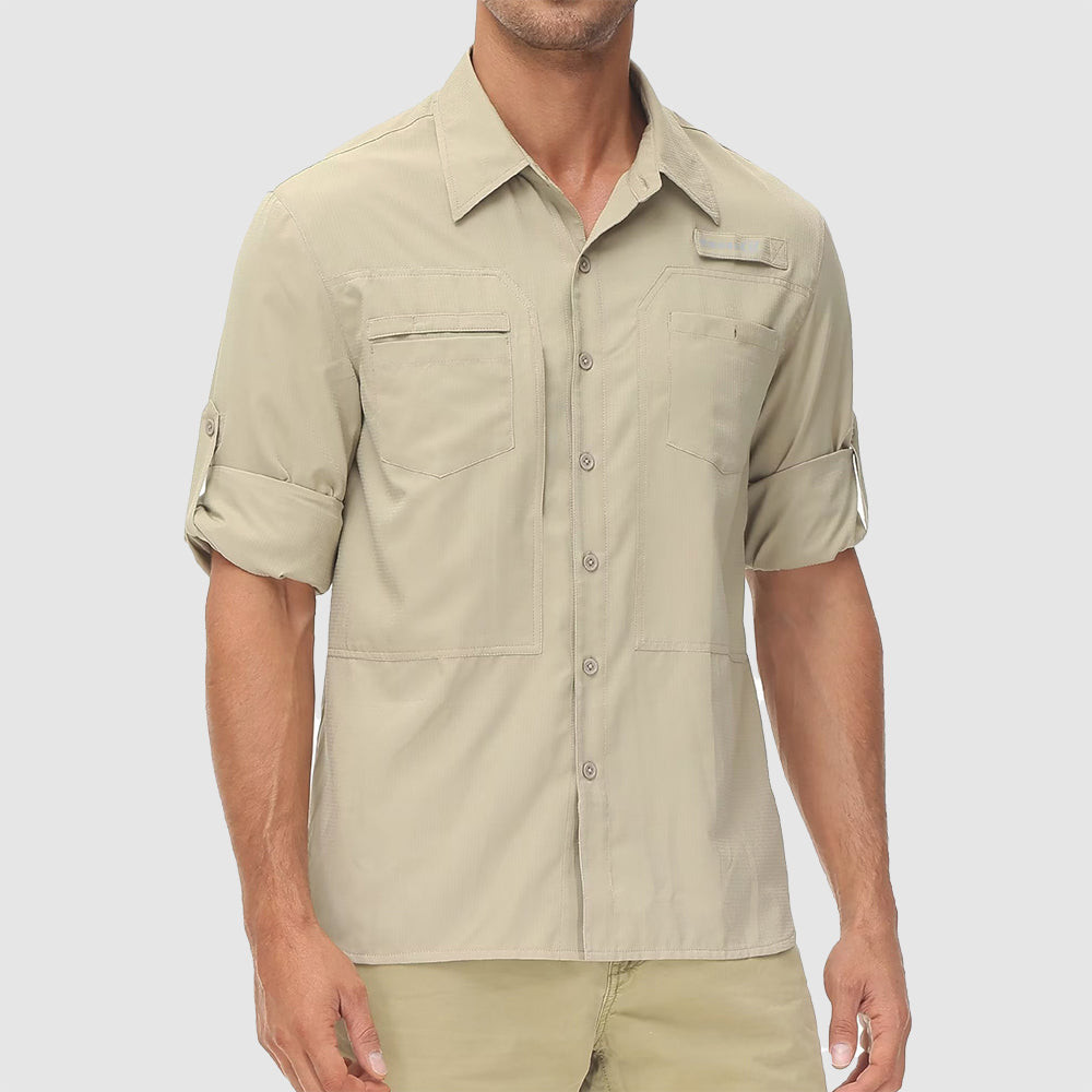 Experience ultimate functionality with the Great Outdoors Long Sleeve Shirt, featuring multiple pockets for added storage convenience. This classic staple is equipped with UV protective and mosquito repellent finishes, combined with an antibacterial, quick-dry fabric to ensure you stay fresh and protected throughout your day and night adventures.