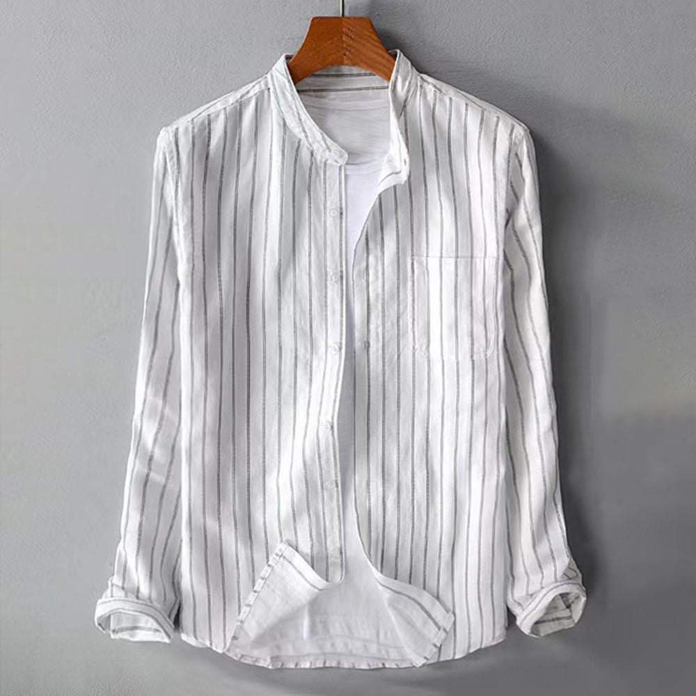 Elegant and Versatile: The pinstripe design and mandarin collar make this shirt a versatile addition to your wardrobe. Pair it with jeans for a casual look or with dress pants for a more formal occasion.
