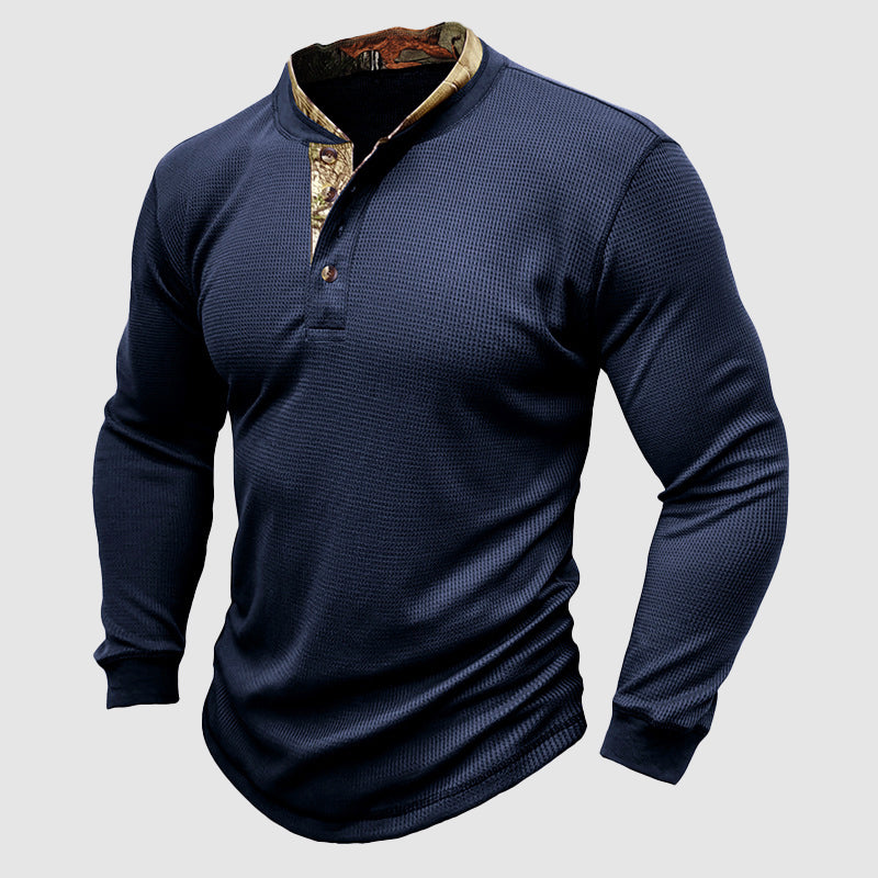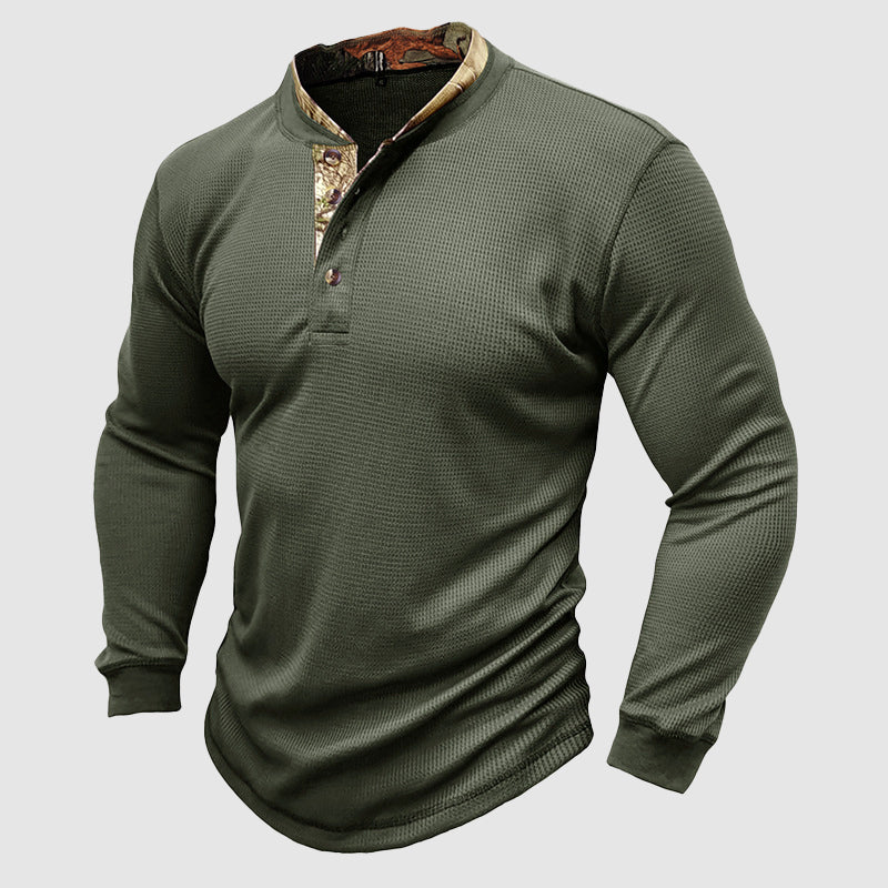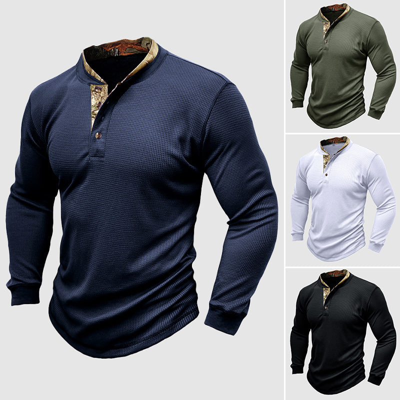 Unveil effortless style with the Marksman Henley Shirt, showcasing a vibrant, colorful collar for added flair. Designed for comfort, this shirt offers a relaxed fit, making it a perfect choice for your daily outfits.
