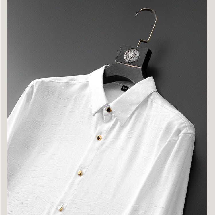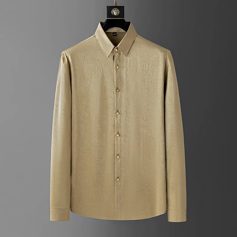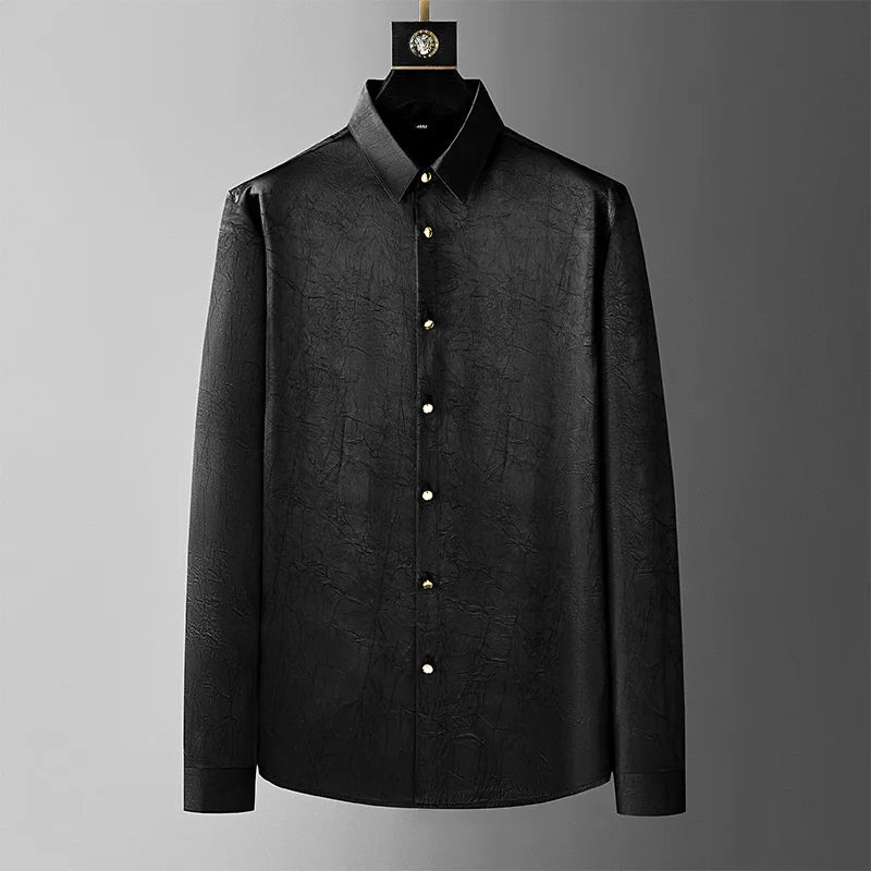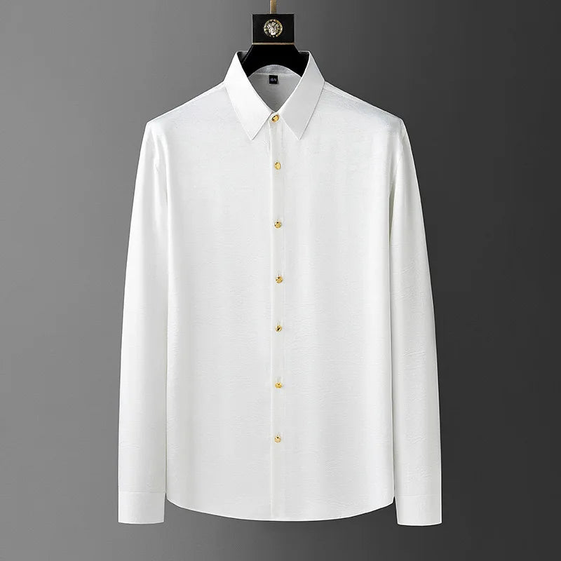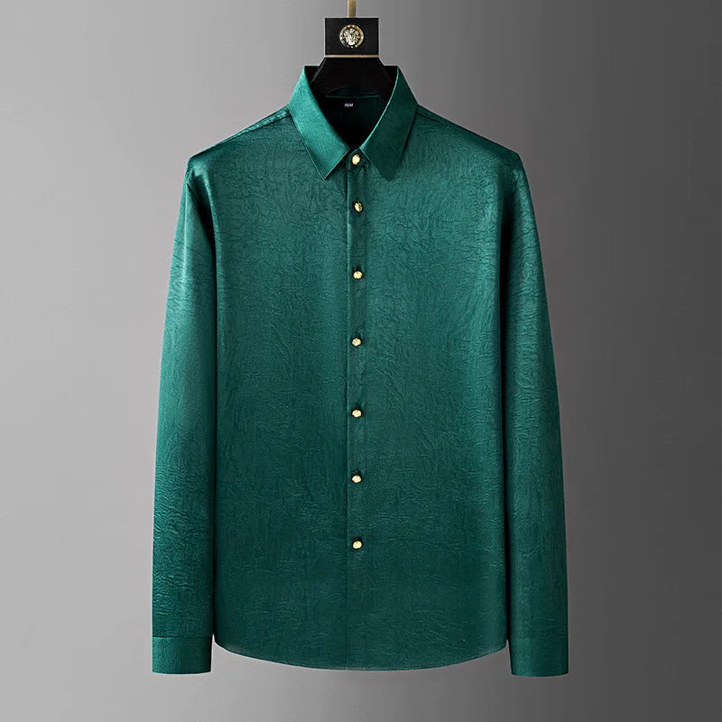 Step out in style with this smooth silk shirt that's perfect for anyone who loves a bit of luxury. Its bright colors and shiny gold buttons make it a classic, yet modern choice. Light and comfortable you will  look great no matter where you go.
